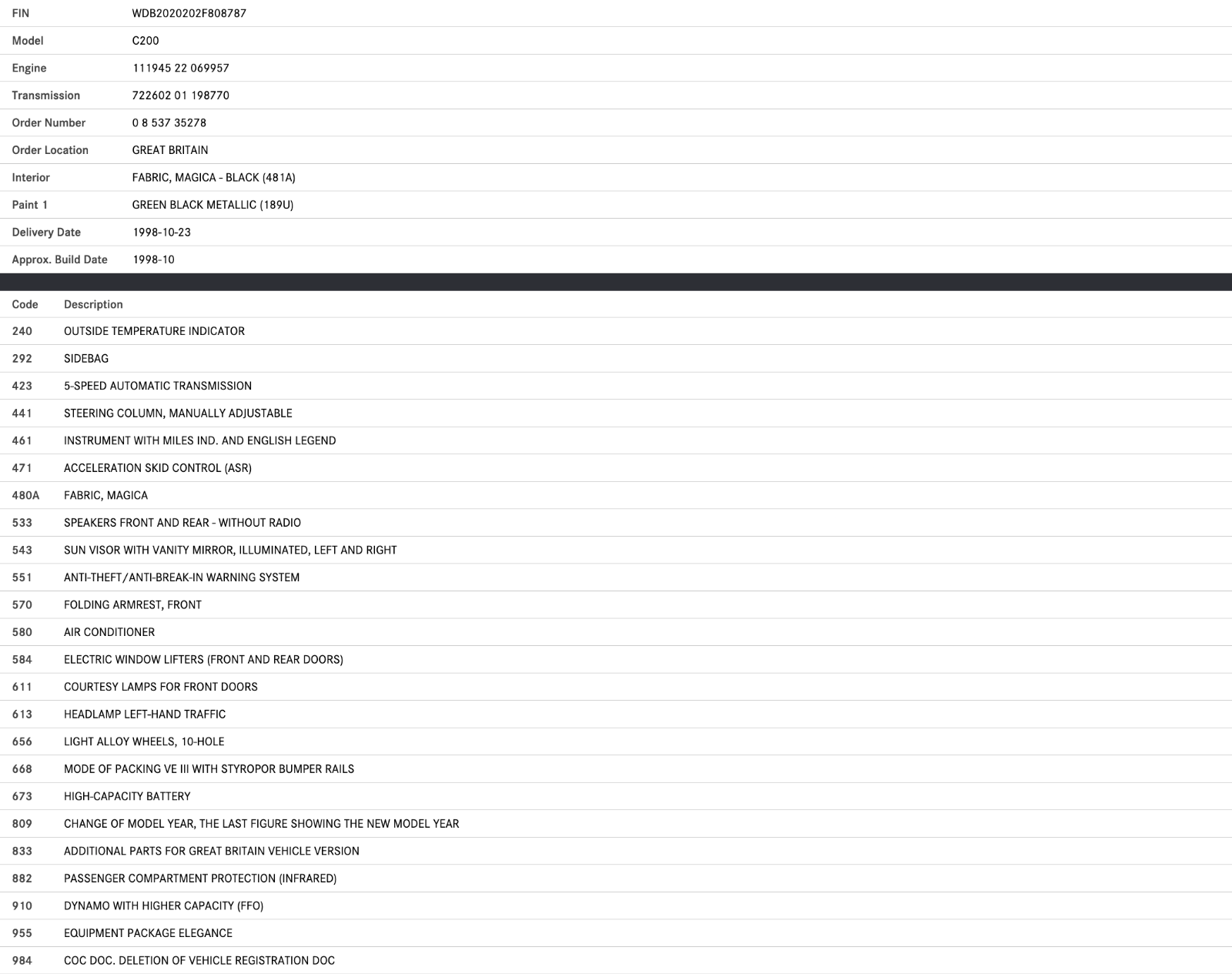 Coming from a 1998 Mercedes-Benz W202 C200