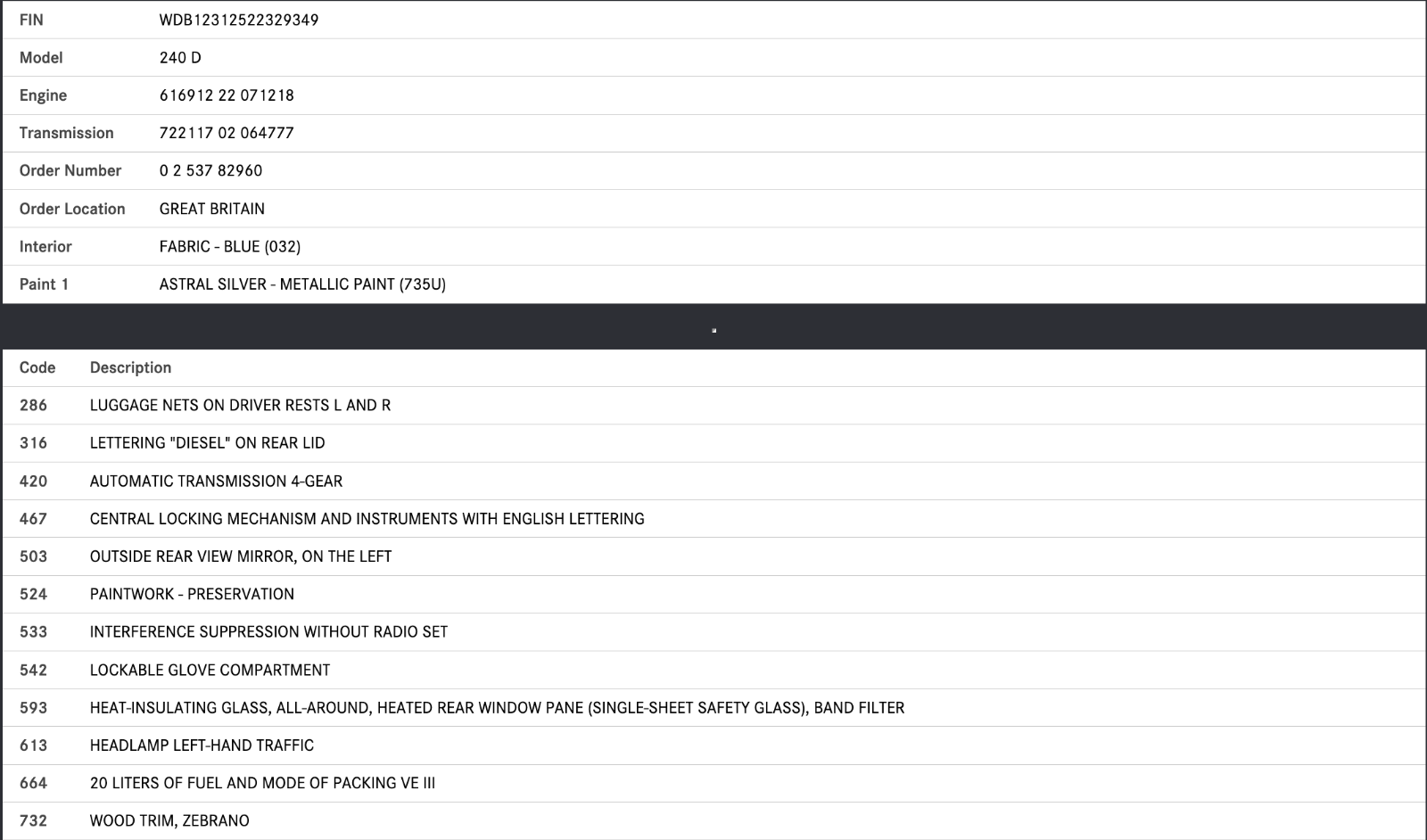 Coming from a 1982 Mercedes-Benz V123 240D LWB
