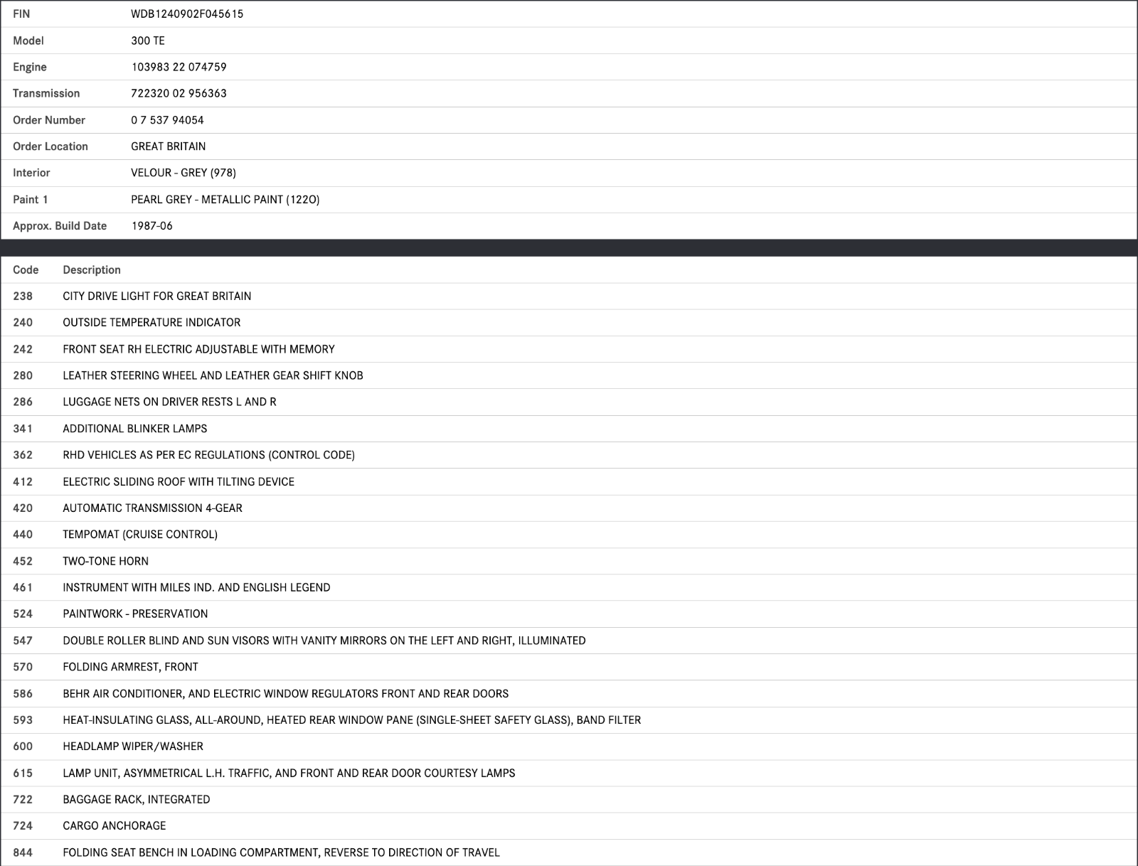 From a 1987 Mercedes-Benz S124 300TE Wagon
