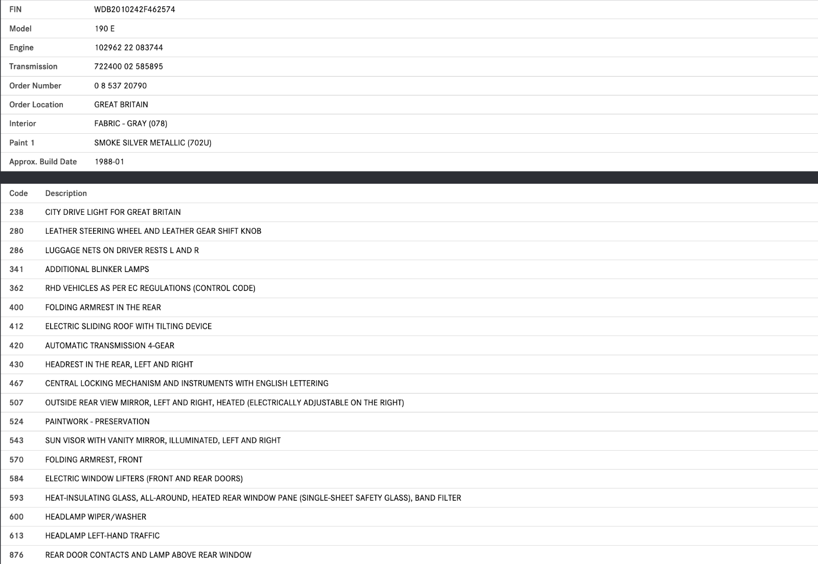 VIN: WDB2010242F462574