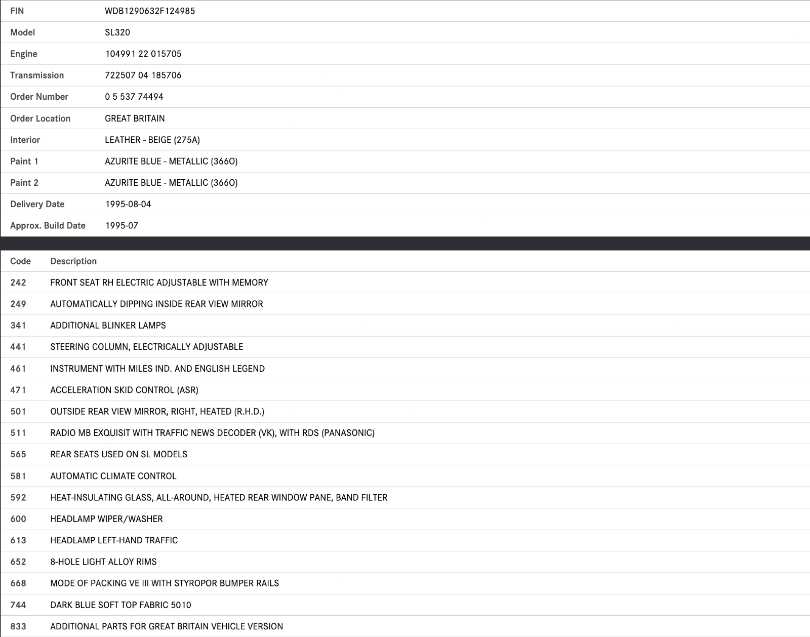 VIN number: WDB1290632F124985