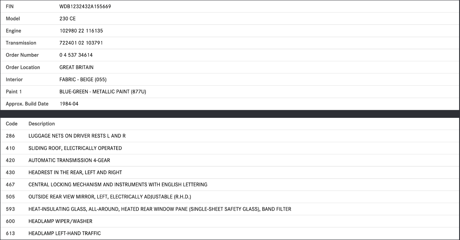 Coming from a 1984 Mercedes-Benz C123 230CE Coupe