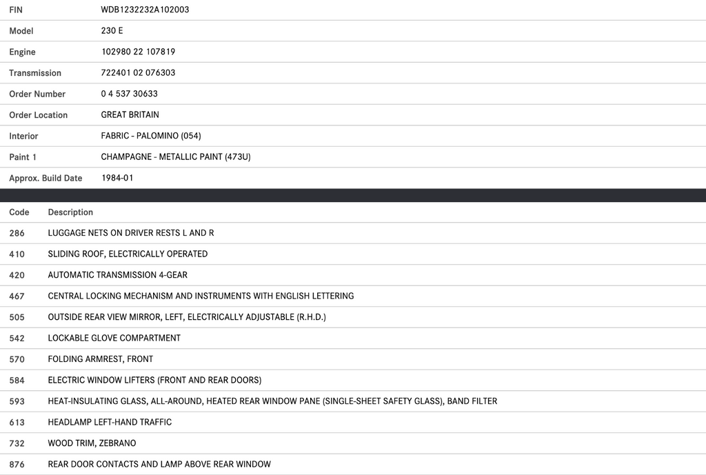 Coming from a 1984 Mercedes-Benz W123 230E.